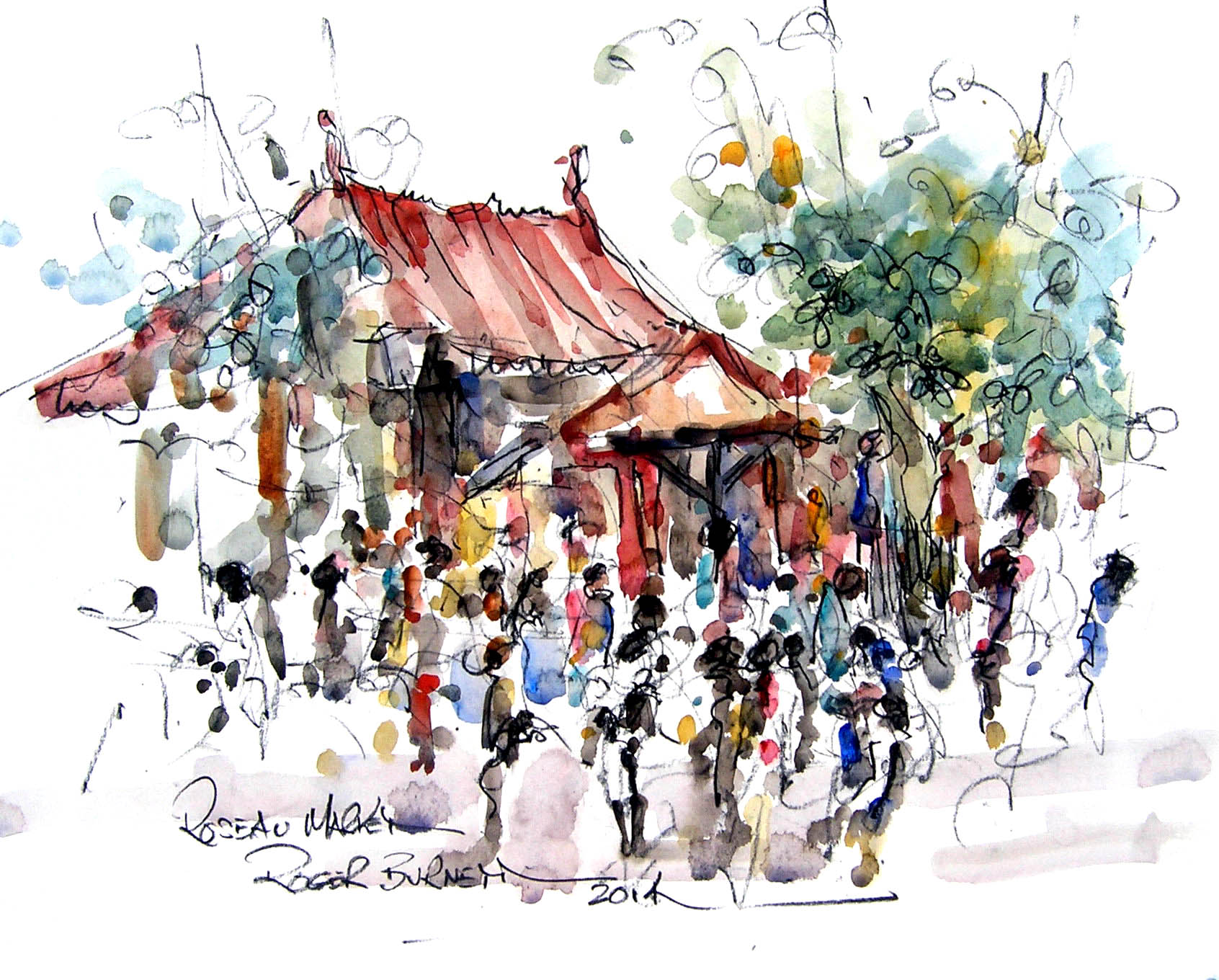 Award winning artist Roger Burnett has spent fifty years capturing the people and places of the Caribbean. As a sculptor his working methods have changed little since the time of Michelangelo and as a watercolourist his subjects range from tropical townscapes to the sensuous figures in his series Daughters of the Caribbean Sun. He makes many of his own materials, including distinctive art papers from Dominica's rich natural resources.